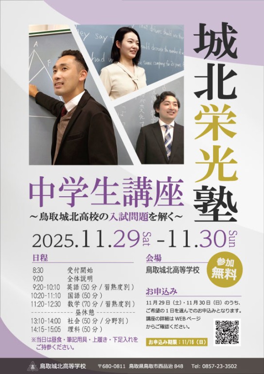 毎年好評をいただいております城北栄光塾中学生講座を11月29日(土)・11月30日(日)に開催します!